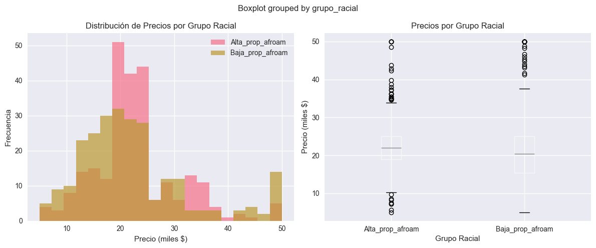 print(f"\n💰 DISTRIBUCIÓN DE PRECIOS POR GRUPO RACIAL:")