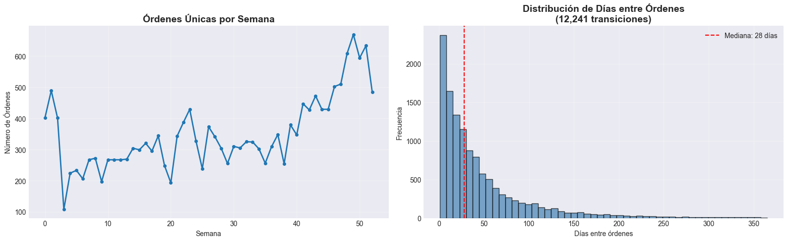 print("\n💡 Los NaN son normales: aparecen en las primeras órdenes donde no hay historia previa")